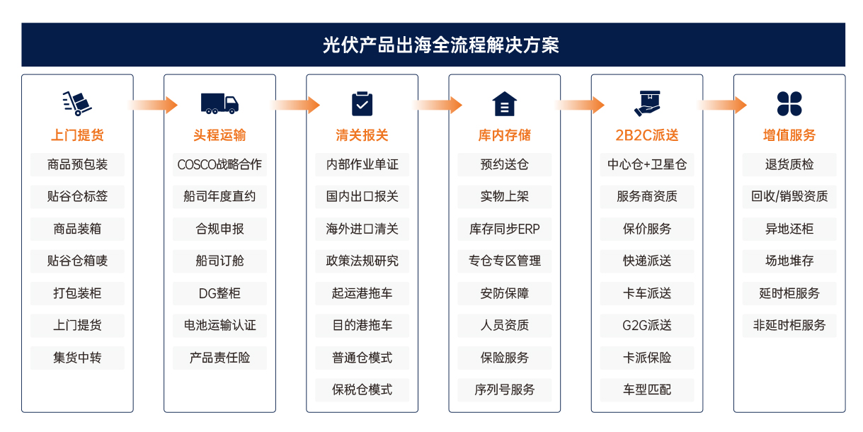 緊跟“新能源+儲能”新趨勢,關注儲能行業多元應用場景,充分發揮谷倉軟硬件資源優勢,為新能源電池產品和光伏產品打造綠色、安全、高效的“一企一案”式定制化服務方案,有效打通「頭程運輸-入庫認證-海外倉存儲-2B2C派送-退貨質檢」全流程倉配路徑,嚴格把控人貨場管理安全,助力新能源客戶實現供應鏈數字化運營和可持續發展,共同打造可靠高效的精益物流,逐“綠”前行。